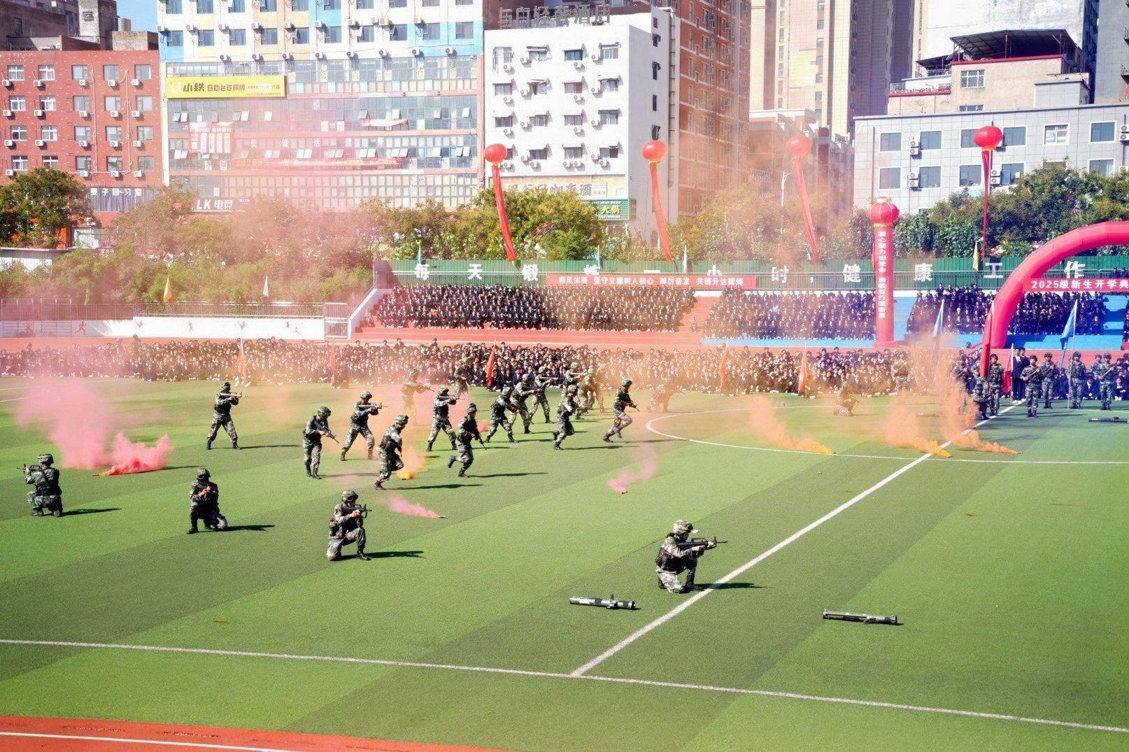 大河网讯 从队列式到军体拳、匕首操、实战演习......历经近一个月的高强度训练,9月25日,郑州升达经贸管理学院2025级新生上交入学第一份“答卷”。